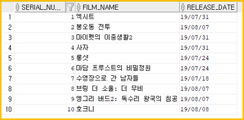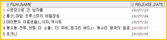 FILM_NAME 컬럼을 RELEASE_DATE 컬럼 기준으로 그루핑하고