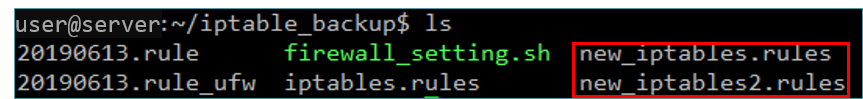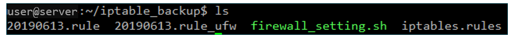 서버 /home/user/iptable_backup 디렉토리로 이동하면 업로드된 파일을 확인 할 수 있습니다.