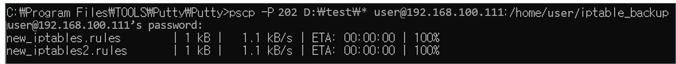 pscp -P 202 D:\test\* user@192.158.100.111:/home/user/iptable_backup