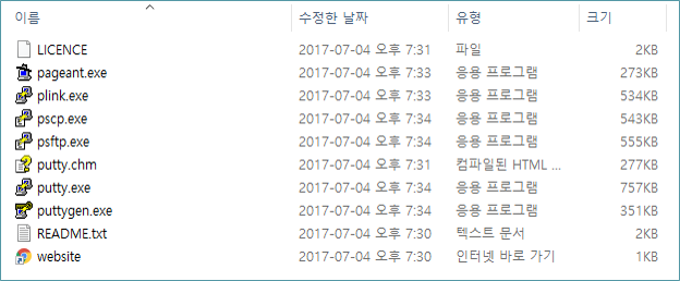 putty가 설치된 폴더로 이동합니다.