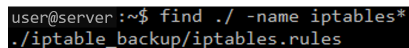 설정한 디렉토리를 기준으로 -name 옵션을 통해 파일명으로 검색하는 명령어 입니다.