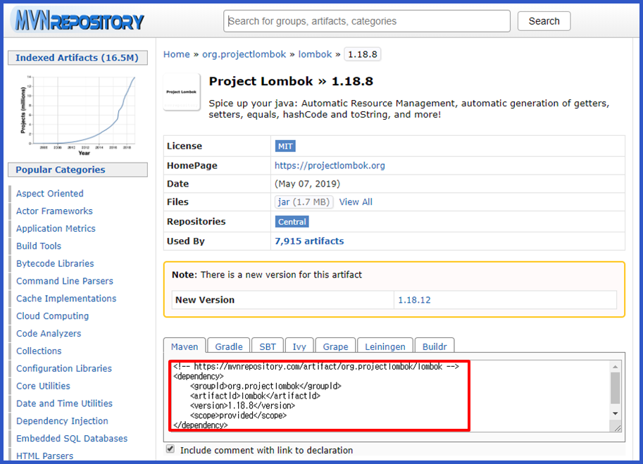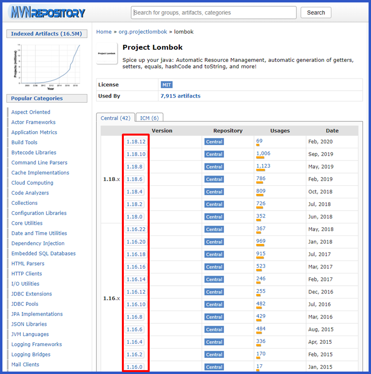 1. https://mvnrepository.com/artifact/org.projectlombok/lombok 접속합니다.