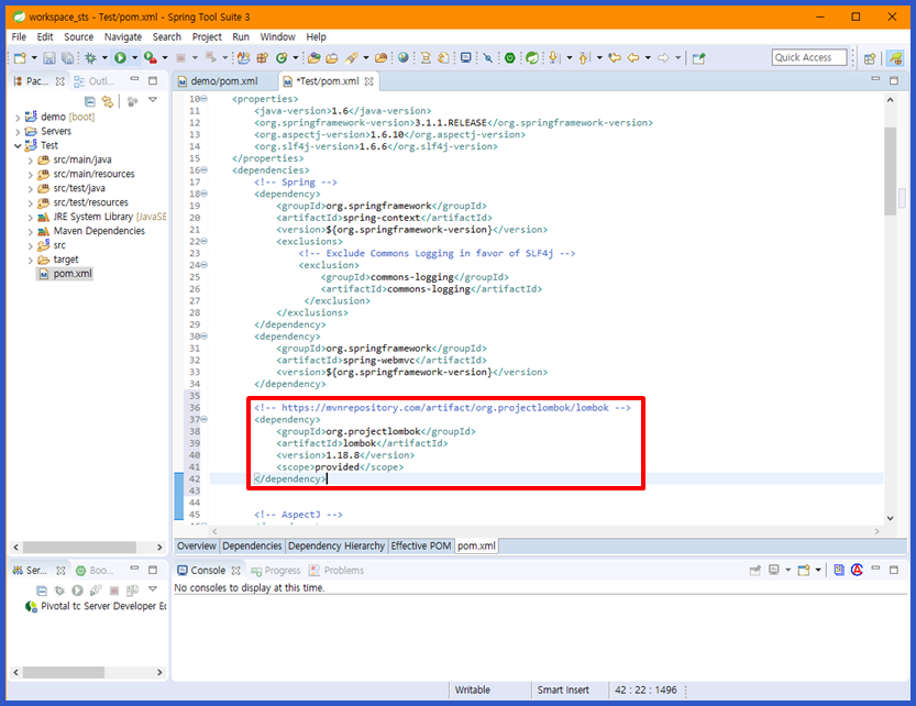 4. Maven Project의 <dependencies> 태그 하위에 복사한 내용을 붙입니다.