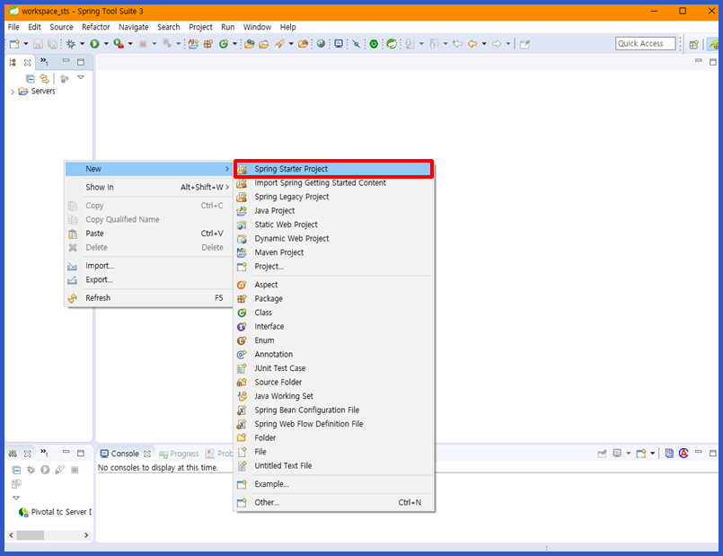 1. STS 우클릭 → New → Spring Starter Project