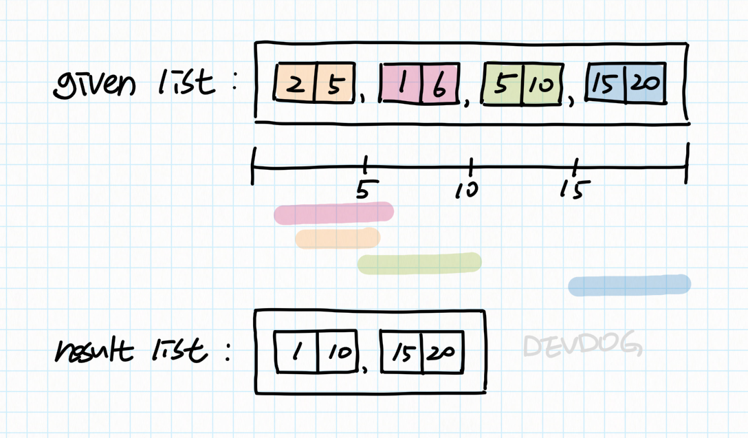 - 앞서 담은 Interval의 종료시간보다 다음 Interval의 시작시간이 빠르면 둘 중 종료시간이 더 늦은 시간으로 변경한다. (통합)